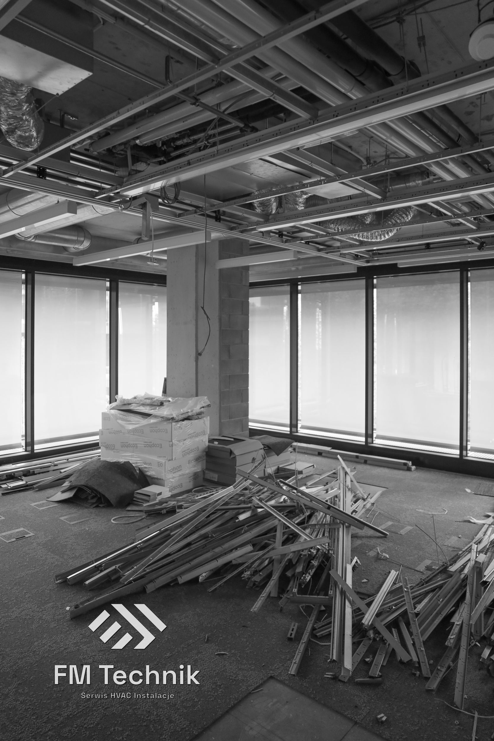 Modernizacja odbywała się w funkcjonującym biurowcu, co wymagało precyzyjnej organizacji, pracy w godzinach uzgodnionych z administracją oraz ścisłej koordynacji z innymi wykonawcami. Dzięki doświadczeniu zespołu FM Technik udało się zrealizować projekt bez zakłóceń dla najemców budynku.